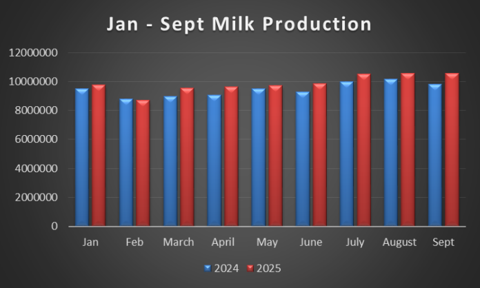 The growth recorded in September extends a consistent upward trend observed throughout 2025. From January to September, total milk production has shown resilience, registering positive growth in most months despite cost pressures, input shortages, and climatic uncertainties.